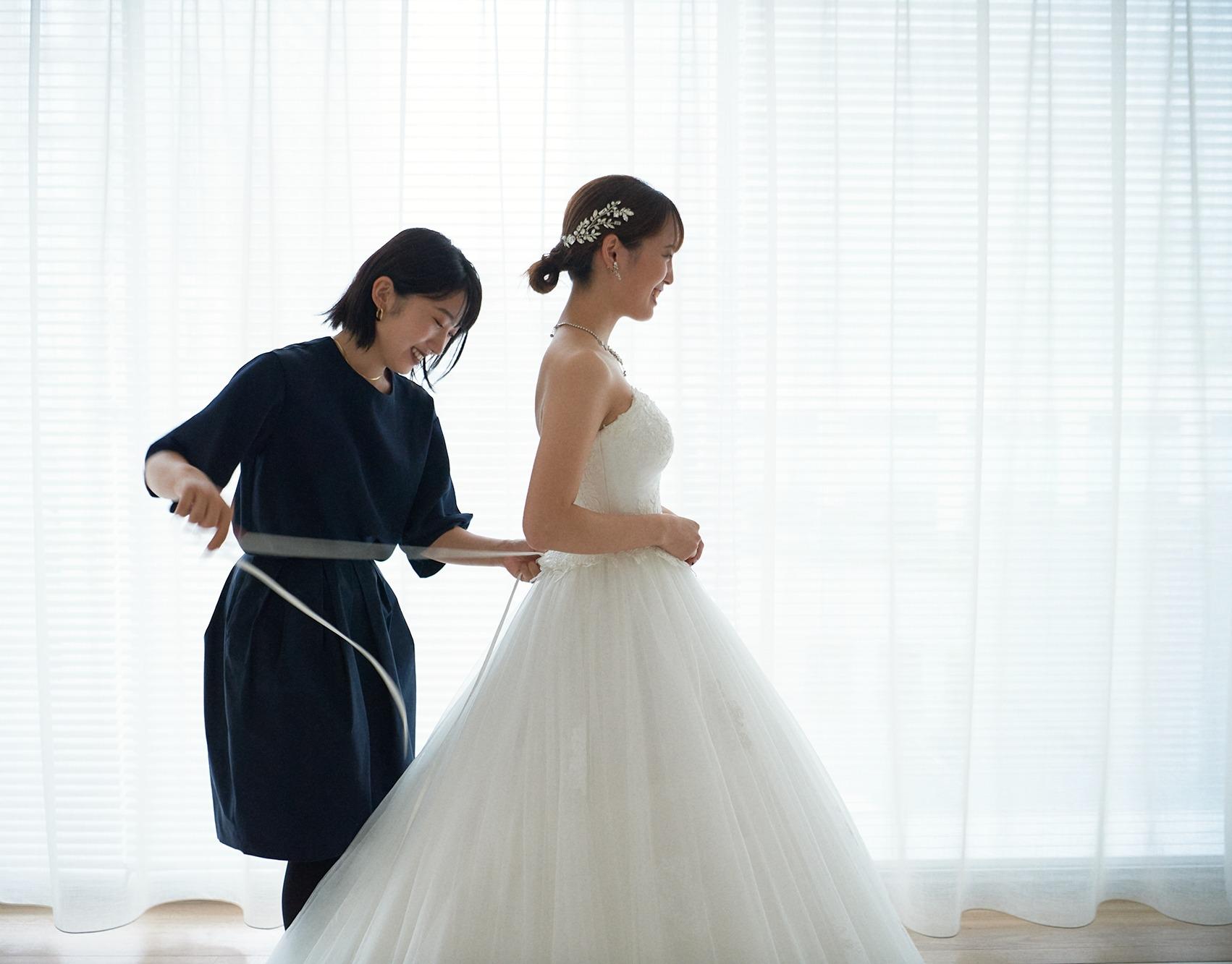 アールイズ・ドレスは、花嫁と私たちが想いを寄せあうことで、はじめて完成するドレスです。 “着るあなた”らしく、 着こなしてもらうためにおふたりにとって最高の1着をご案内いたします。