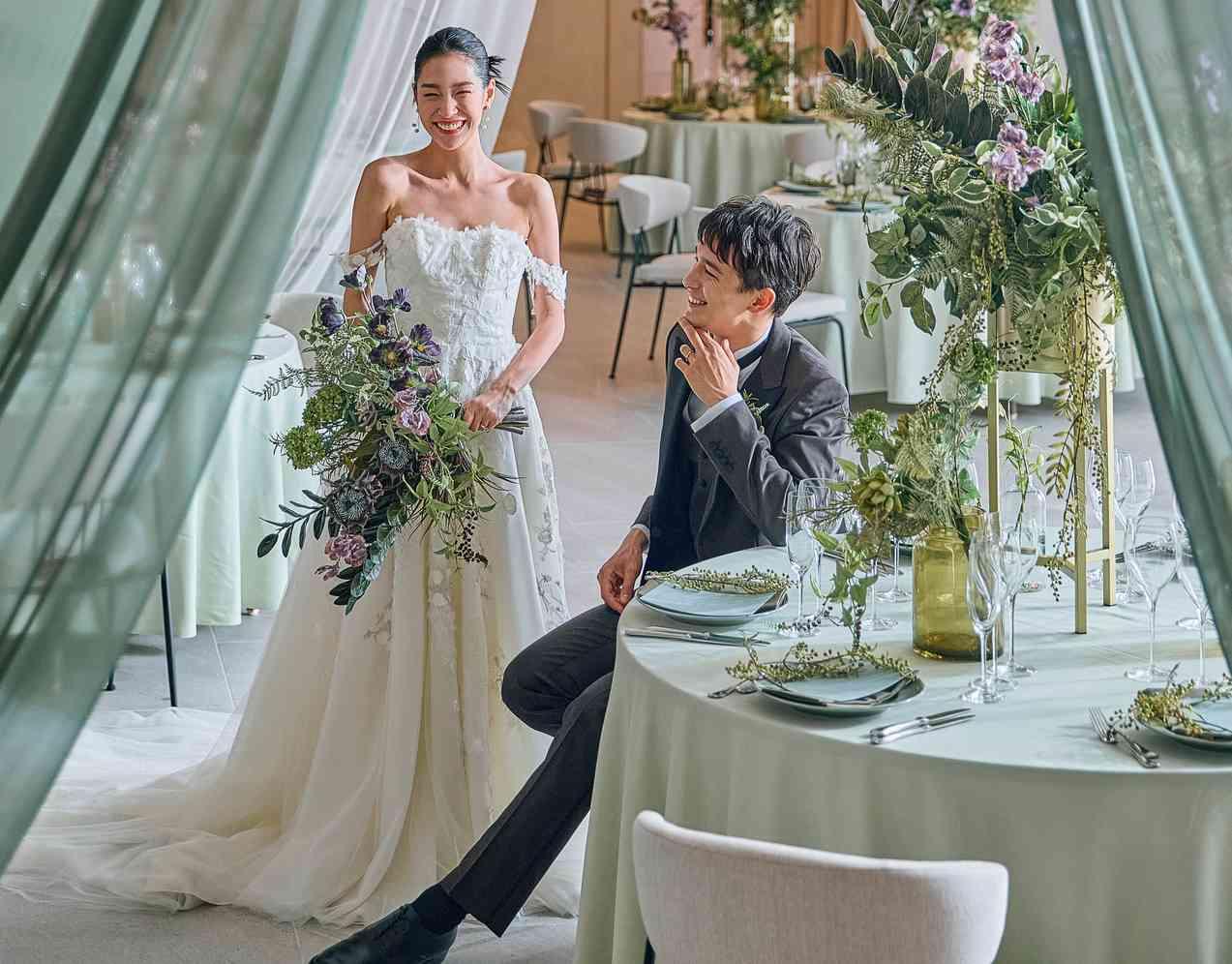 会場⾒学から当⽇まで同じプランナーが寄り添う「⼀顧客⼀担当制」で、ふたりの想いを丁寧にカタチに。各分野のプロフェッショナルがチームで連携し、ドレスやブーケ、空間演出までトータルサポートいたします。
