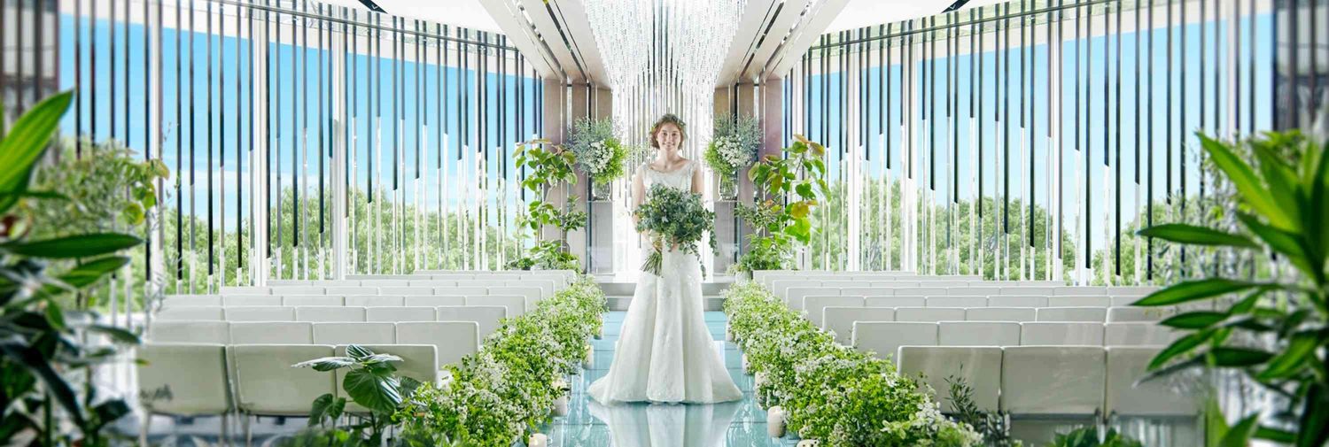 名古屋唯一のダイヤモンド型チャペルは3面ガラス張りで明るく洗練された雰囲気。