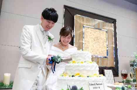 フルーツたっぷり・3段の大きなウェディングケーキをご用意し おふたりとも楽しく笑顔たっぷりのケーキ入刀セレモニー♪ 楽しそうな雰囲気がお写真からちゃんと伝わってきますね! ケーキ入刀・ファーストバイト共にゲストの皆さまもおふたりの楽しそうな姿を カメラに収めて過ごしていらっしゃいました。