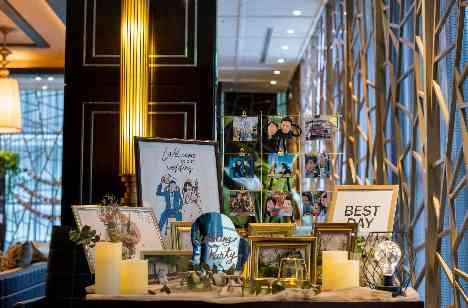 ご参列経験の多いおふたりは自分たちが結婚式を挙げるなら来ていただいたゲストがハッ!と驚くようなサプライズのあるゲスト全員が楽しんでもらえるような式にしたいとお考えのゲスト想いのおふたり。挙式やご披露宴ではこんなことしたい!とたくさんイメージを膨らませておりました♪当日、ロビーにはおふたりの幼少期時代やおふたりの思い出・前撮り写真などもたくさん飾っていただきロビー一面がおふたり色で染まりました。