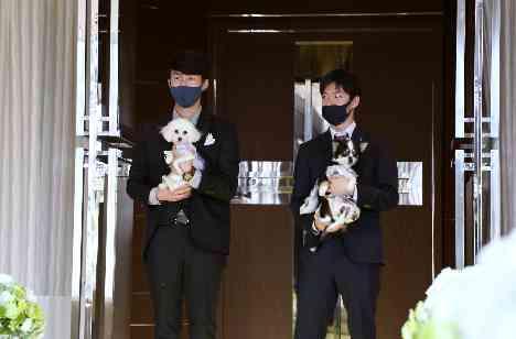 この日お二人の大切なリングを運んでくれたのは・・・なんとお二人が大切にされておりますご家族のワンちゃんたちでした☆ ご入場時は緊張しちゃうから、と抱きかかえられてのご登場♪ セレモニーの際は上手く走って来てくれるかな・・・と周りが心配する中、なんだかんだで二匹ともに元気にお二人の元まで走っていってくれました♪♪