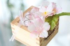 会場装花には桜使う事がご新婦様のご希望でした。 挙式のリングピローにも、会場内にも桜が溢れ季節を感じるとても素敵な空間になりました。