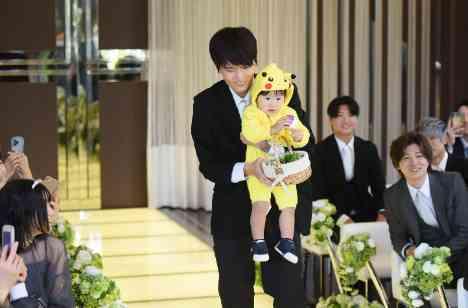 挙式のセレモニーは指輪交換のタイミングでリングキッズの登場♪ キャラクターの着ぐるみをきたかわいいリングキッズの登場に皆様笑みが溢れます♡パパと一緒にお二人のもとにリングを無事お届けできました! その後は皆様にも参加いただいたウェディングドロップスを完成させ、お披露目し、演出が沢山詰まった素敵なお式となりました。