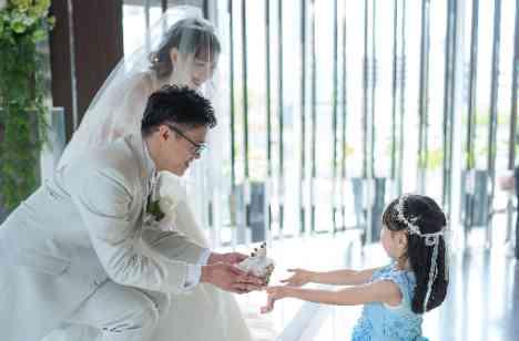 バージロンドを歩き出す前に、ご新郎様のお母様にはジャケットセレモニーを、ご新婦様のお母様にはベールダウンを行っていただき準備はばっちり。お二人でゆっくりと祭壇まで歩いていきます。指輪の交換の際にはお子様がリングガールとして登場!少し緊張しながらもご新婦様のお母様と一緒にバージンロードをしっかりとした足取りでお二人のもとに指輪を運んでくれました。