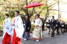 秋空の中行われた挙式は厳かな空気に包まれ、粛々と執り行われました。