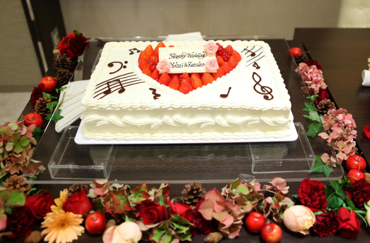 11月のパーティーという事もあり、秋の終わりから冬を感じさせるコーディネートで会場内を彩りました。ドングリをあしらったテーブルフラワーはご新婦様も大満足のご様子でした!また、お二人の出会いは【音楽】お二人の奏でるハーモニーをイメージしたウエディングケーキもこだわりました♪♪♪