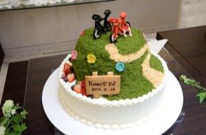 自転車が趣味のお二人。 『可愛くて勿体ないから、ファーストバイトで沢山すくいすぎないように』とお二人。今までに見たことの無いとても素敵なケーキに会場内は大盛り上がりでした!