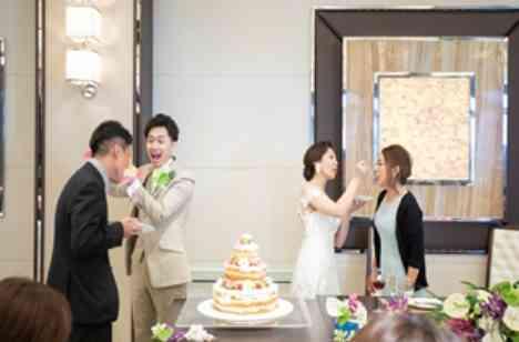 ウェディングケーキもHawaiiをイメージしてパンケーキタワー風にしました。おふたりのファーストバイトの後は、大切なご友人にサプライズバイト♪その後もゲストからのサプライズも沢山あり、おふたりらしいアットホームなパーティーになりました。
