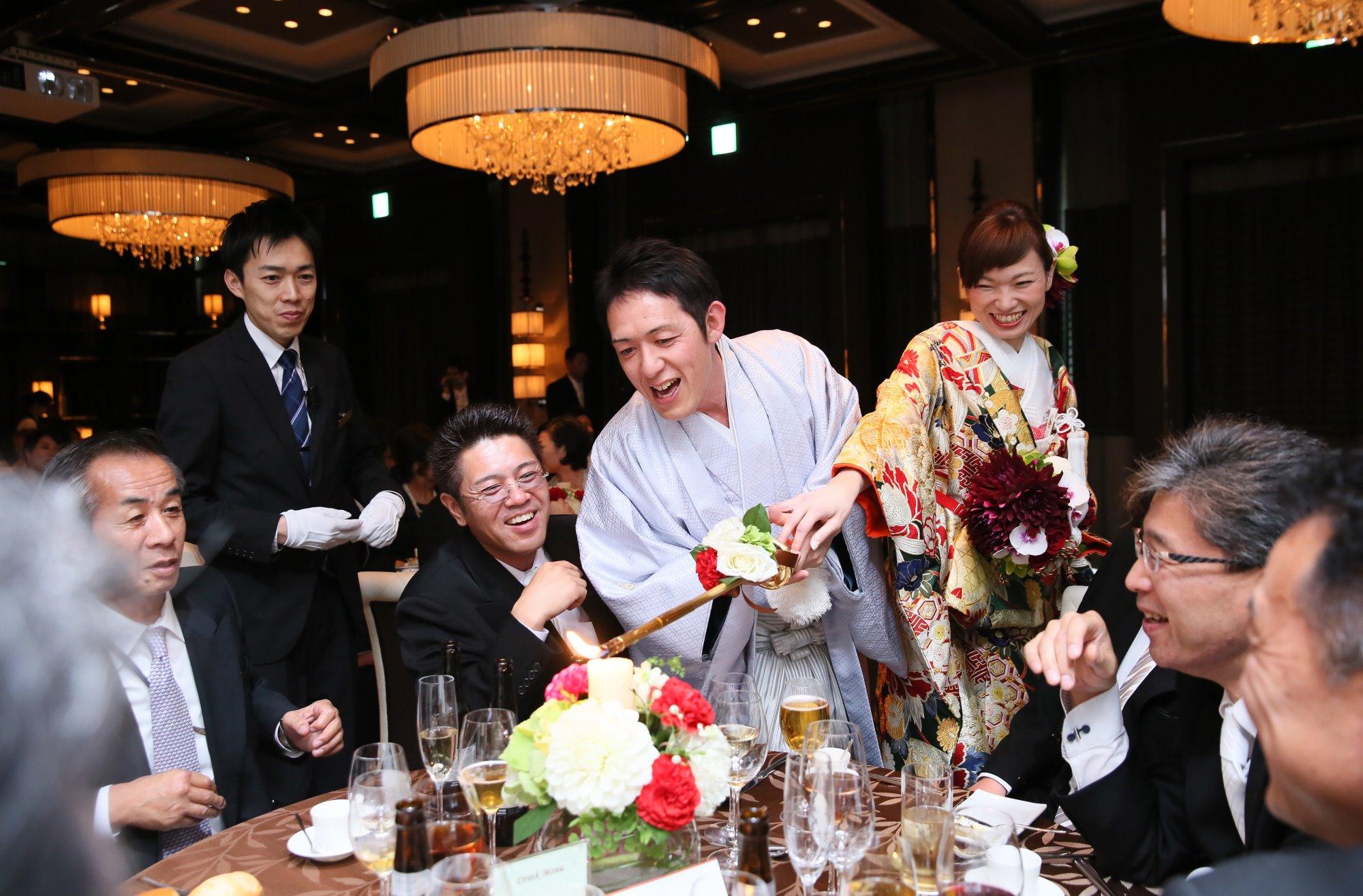 自然にゲストとの距離を縮める事が出来るキャンドルサービス。 会話もはずみ、1テーブルごとに炎が灯る度にゲストから歓声が。 ロマンチックかつ、笑顔溢れる素敵な時間でした。