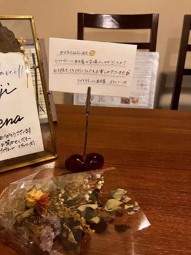 この度は、数あるご結婚式場の中からラグナヴェール NAGOYAのブライダルフェアへご参加いただきまして、誠にありがとうございました。 そして貴重な口コミ、嬉しいお言葉をいただけましたこと、大変嬉しく思っております。 ご検討いただく際に何かご不明点等ございましたら何なりとお申し付けくださいませ。 貴重な口コミをいただき、誠にありがとうございました。