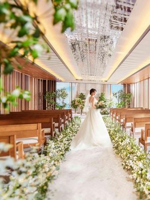 開放的なチャペルで大切なゲストに見守られる温かなセレモニーを。挙式の後も余韻にゆったりと浸れるのは他の挙式のゲストを気にする必要のない貸切だからこそ。