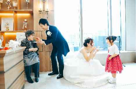 披露宴の演出では、大好きなおばあ様と姪子ちゃんをお呼びして 「感謝」の気持ちを込めてサンクスバイト♪ さらに従妹のインタビューやご家族によるテーブルインタビュー、プロフィールDVDの上映、写真撮影、親御様への花束贈呈など、結婚式のテーマ通り大切なご家族と幸せで温かい素敵な1日を過ごしていただく事ができました。