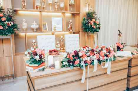 結婚式をするなら、おふたりらしいテーマウェディングでゲストの皆様の記憶に残る一日にしたいという想いから、おふたりの想い出の映画をコンセプトにロビーを装飾。 おふたりの旅行の写真を映画のフィルムに当てはめて、素敵な映画のワンシーンがゲストの方をお出迎えしてくれます! ロビーを彩るお花は赤色をベースとしており、 上品な雰囲気に。