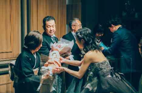 楽しい結婚式もそろそろ結びとなります。 最後は今まで大切に育ててくださったご両親へおふたりから感謝の贈呈品のお渡しです。 感謝の贈呈品は「ウェイトドール」といって、新郎新婦様の出生体重と同じ重さで作られた人形が贈られました。 このウェイトドールを持ったご両親は、おふたりが産まれたときのことを思い出し涙を流されていました。