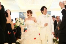 「ヴェールダウンのセレモニー」 お母様には「いってらっしゃい」の想いをこめてヴェールをおろしていただきました。お母様もご列席の皆様も感動と祝福の涙であふれました。 挙式前は緊張する~とおっしゃっていたお二人も退場時には笑顔。 フラワーシャワーの祝福でとっても幸せな表情!自然光が降り注ぐ中、 お二人の笑顔とゲストからの祝福の言葉でお写真タイムへ。