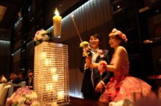 3面から光が入る披露宴会場もカーテンを閉めきればキャンドルが似合うシックな雰囲気へ。 各卓へキャンドルサービスを行った後はメインのキャンドルへお二人で点火。 会場内でゆらめくキャンドルにゲストの皆様も大歓声! その後、親御様へのお手紙、感謝のプレゼント贈呈と進み、 最後は銀座中央通りでの撮影会♪ マグナスならではの思い出作りで楽しい一日を送っていただきました!