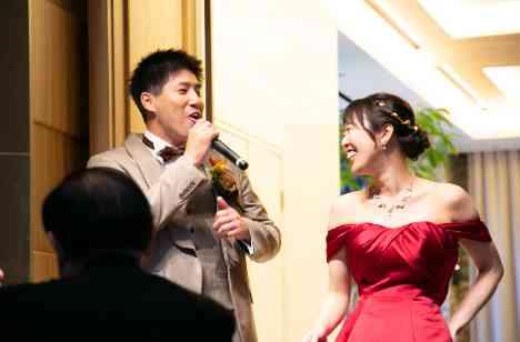 ゲストに楽しんでいただくというコンセプトのもと、再入場の際に新郎様は歌唱・新婦様がダンスを披露しました! この日のために準備の合間をぬって練習されたお2人。 会場は大盛上がりでした! そのままおふたりはフォトラウンドでゲストの皆様のもとへ。 久々に会うご友人様やご親族へ、感謝の気持ちをしっかりと伝えられるお時間となりました。