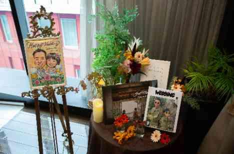 おふたりのご希望の中に自分たちらしさとおもてなしを取り入れたいということになり、会場はご新婦様のお好きなドライフラワー×オータムカラーでコーディネート!お二人らしいアイテムでロビーを装飾することに! おもてなしの想いも大切にしたいという気持ちからデザートビュッフェをご提供することとなりました。