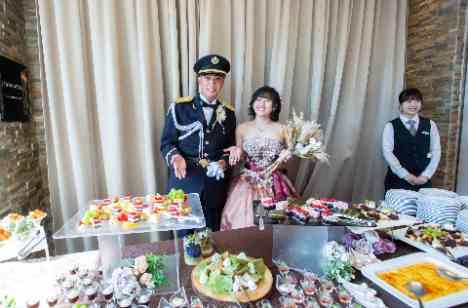 お食事の締めくくりはデザートビュッフェでおもてなし! おふたりの出身地のフルーツや特産品を使ってご友人様からご親族様まで全ての方が楽しめるデザートでご用意されました! 採れたてブドウや酒粕を使ったガトーショコラなど、様々なデザートで皆様の笑顔を見ることができ、お互いの出身地のご紹介にもなりました。