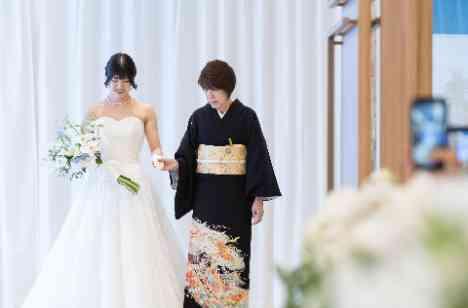 入場はお母様とご入場いただく、マザーズロードからスタート。 バージンロードという人生のストーリーにお腹の中で守り続けた10ヶ月間をお母様自身が振り返りながら新婦様と歩いていただくお時間。 最後の子育てといわれているベールダウンも行い、お父様とバージンロードへ歩みを進めます。 支えてくださったご両親様と一緒に歩く感動的なお式となりました。
