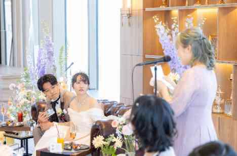 パーティがスタートしウェルカムスピーチ、乾杯と和やかな雰囲気で進んでいきました。そして、ご新婦様のご友人様によるスピートがスタート☆ 今までの感謝の気持ちや思い出などが込められたスピーチにご新婦様の目に涙が・・・。結婚式だからこそ伝えられる想いは、心に残る忘れられない素敵な言葉の贈り物となりました♡