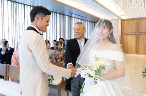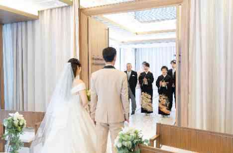 職場で出会われ愛を育まれた新郎新婦様。当日はお招きする主賓の方々へのおもてなしや、ご友人や親族様がゆったりと過ごせることを大切に考えられ、演出よりも歓談を重視された結婚式をつくりあげました。 挙式のリハーサル前、タキシードとドレスに身を包まれた新郎新婦様と親御様のご対面の瞬間では、ご用意された手紙を贈られると、親御様もとても嬉しそうにおふたりと言葉を交わされている様子が印象的でした。