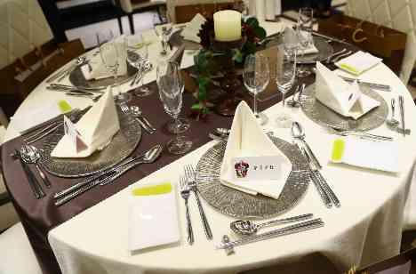 会場のテーマはもちろんハリーポッターの世界へ。会場のお花も古い洋書を使って世界観を演出。 お二人の登場は魔法の杖をもって登場! 会場のスタッフもこの日は各学園の色のネクタイでお出迎え! 会場全体が一体となった素敵なパーティになりました。