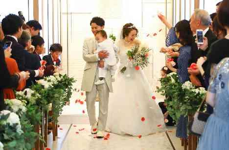 お子様を新郎様が抱っこして入場♡ チャペル内が一気に和やかな雰囲気になりました♪ お子様は挙式の間中ずっといい子でいてくれました! 退場は花の香で場を清め 魔除けの意味もあるフラワーシャワー♪ 家族で浴びるフラワーシャワーは 一生の記憶にのこります…*