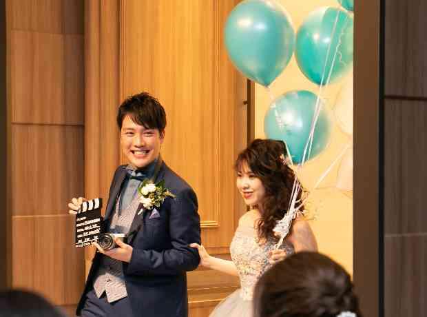 《映画》をテーマにしたお二人らしい演出で ゲストの笑顔が溢れるアットホームな結婚式に♪ お二人からのスピーチも遊び心あふれる 「カンペ」を使った演出! 《映画》をテーマにしたお二人の結婚式は ゲストの心のフィルムに収まりました♡