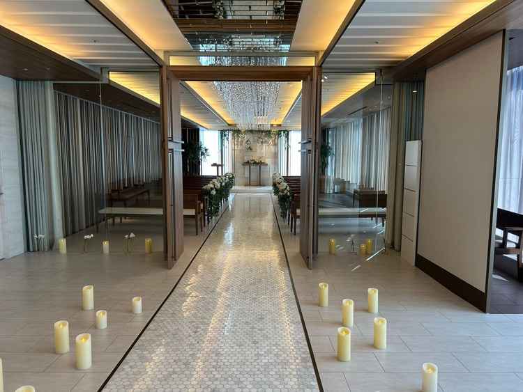 チャペルに入る前に、家族宛のムービーを流せるとのこと。斬新で良いアイデアだと思った。その他の設備については説明がなくよく分からなかった。