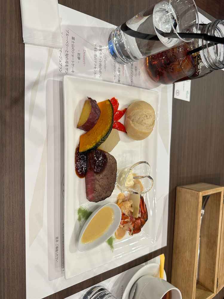 お肉が柔らかくておいしかった。 また、料理に合うワインということで出してもらった赤ワインがとても飲みやすく気に入った。