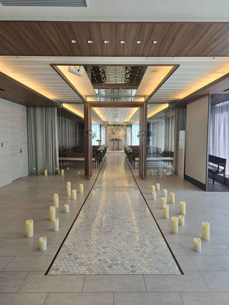 会場は綺麗で高級ホテルのような内装。サイズ感はこじんまりしているが、盛大な結婚式をあげるイメージではない人にはちょうどいいサイズ感。