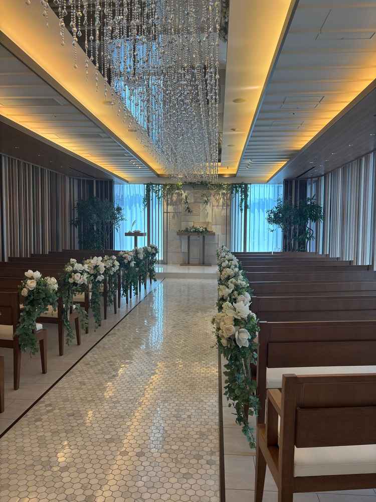 高級感があふれ、デザインが統一されていた。また、こだわりのあるバージンロードが印象的で他の会場との違いを感じた。