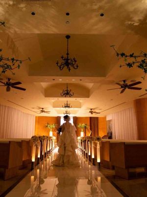 緩やかに時が流れる水のチャペル ゆるやかに流れる水音とゆっくりまわるシーリングファンがこれまでのお2人が過ごしてきた時間ここから始まるお2人の時間の流れを表現