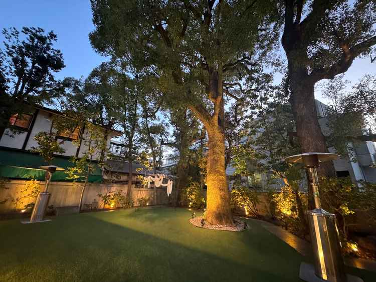 海外風のガーデンと大きな楠のシンボルツリーが特徴的な会場でした。 都内でガーデンウェディングを検討されていらっしゃる方には候補に入ってくるかなと思います。 披露宴会場は建物内となるのですが、建物内は全体的にヴィンテージライクな雰囲気の会場でした。