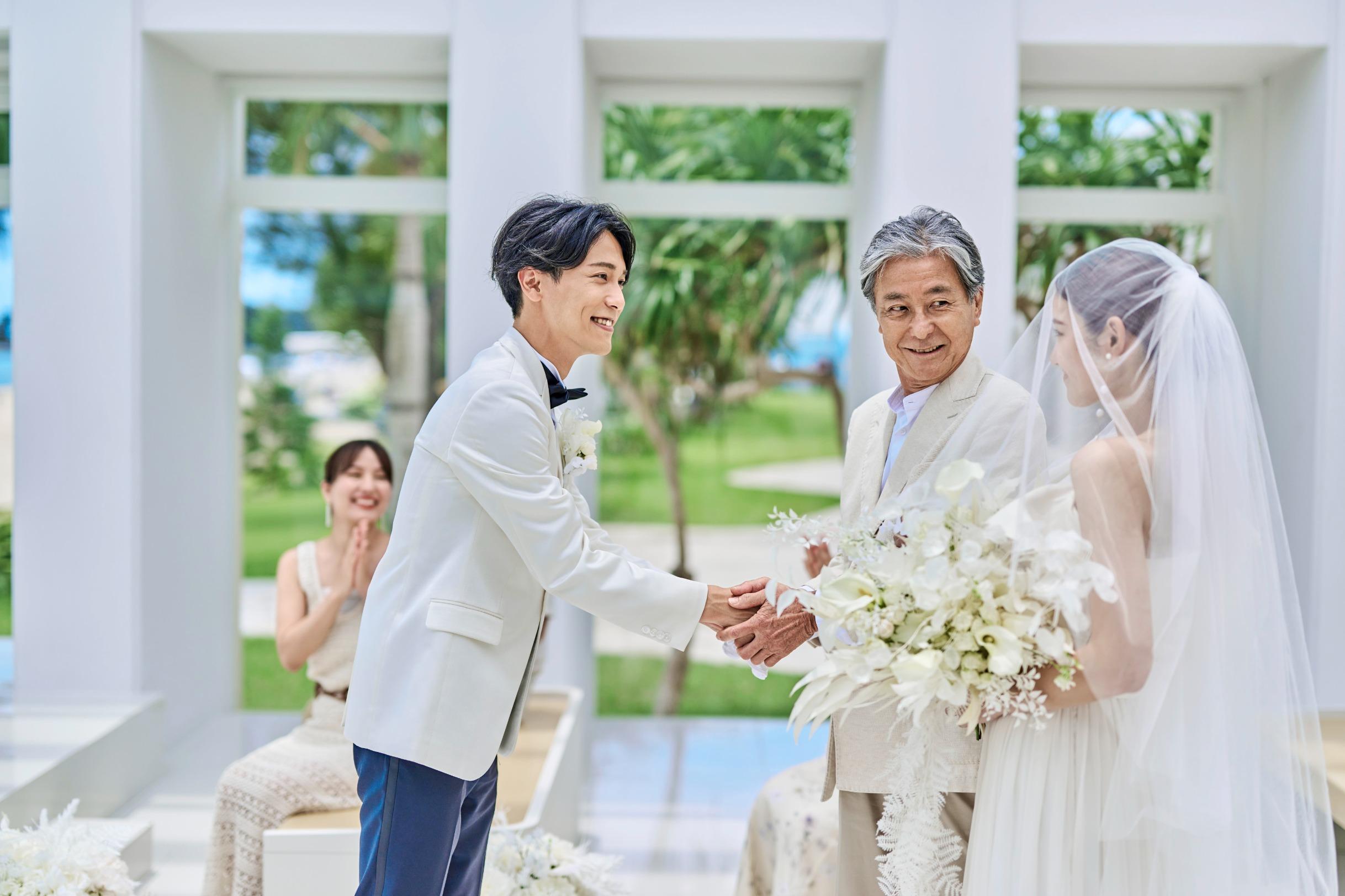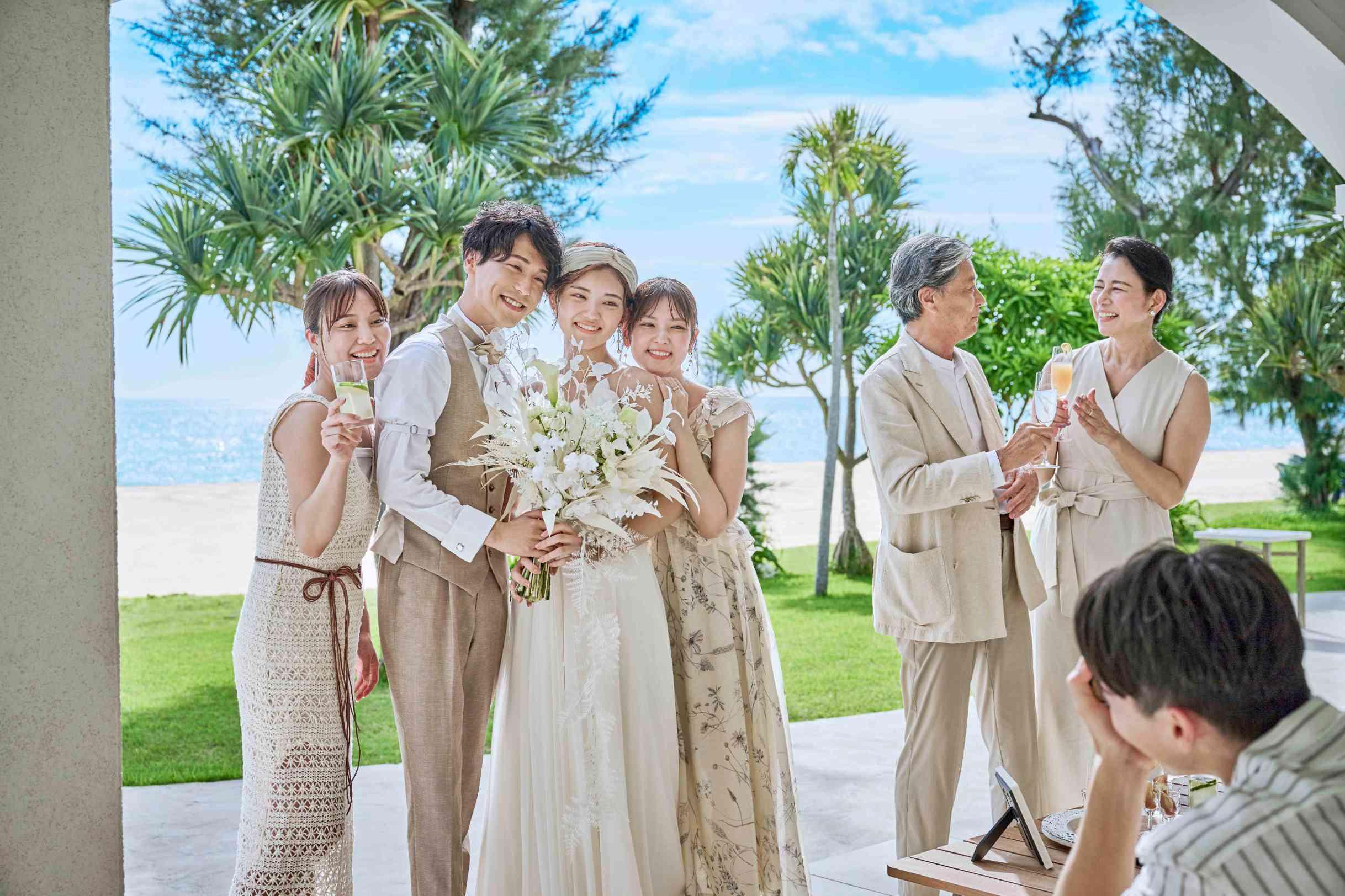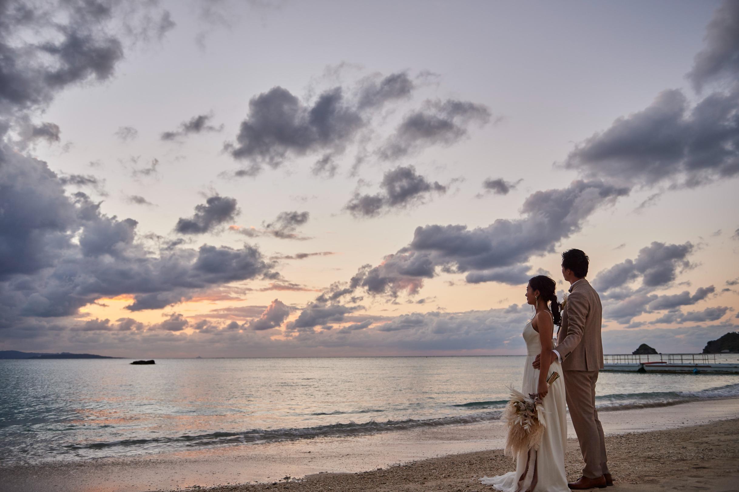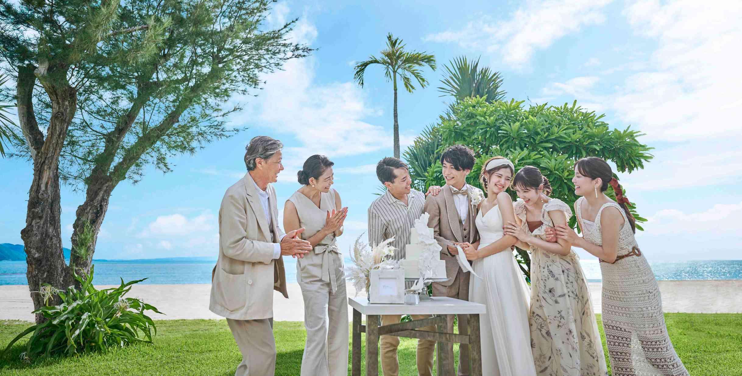 どこまでも続く白砂のオクマビーチがウエディング舞台。太陽の光と波音と心地よい海壁を感じながら自然に包まれたセレモニーを。