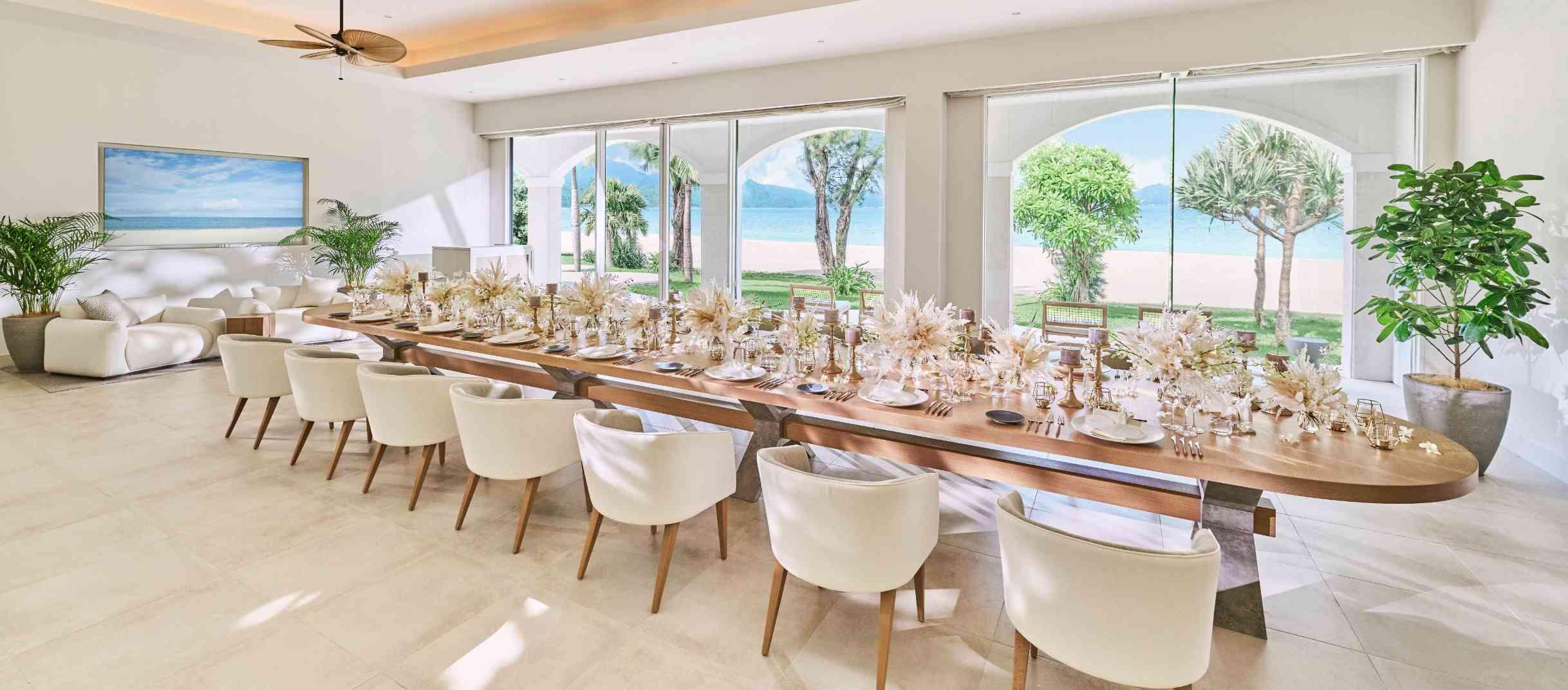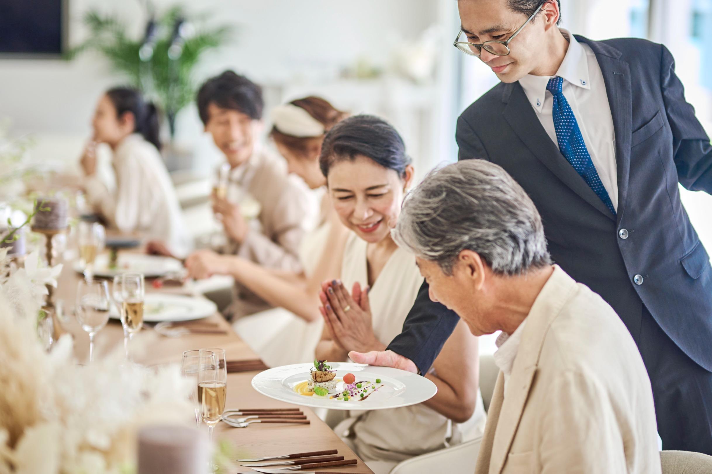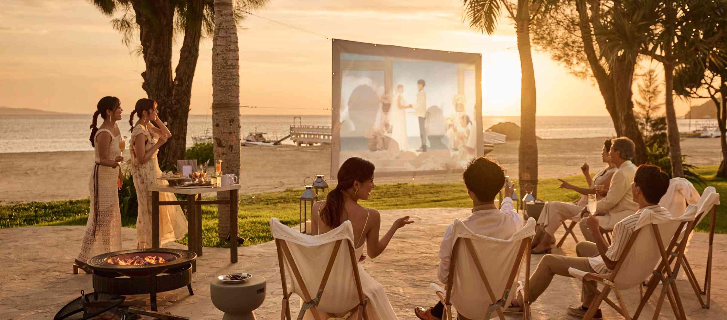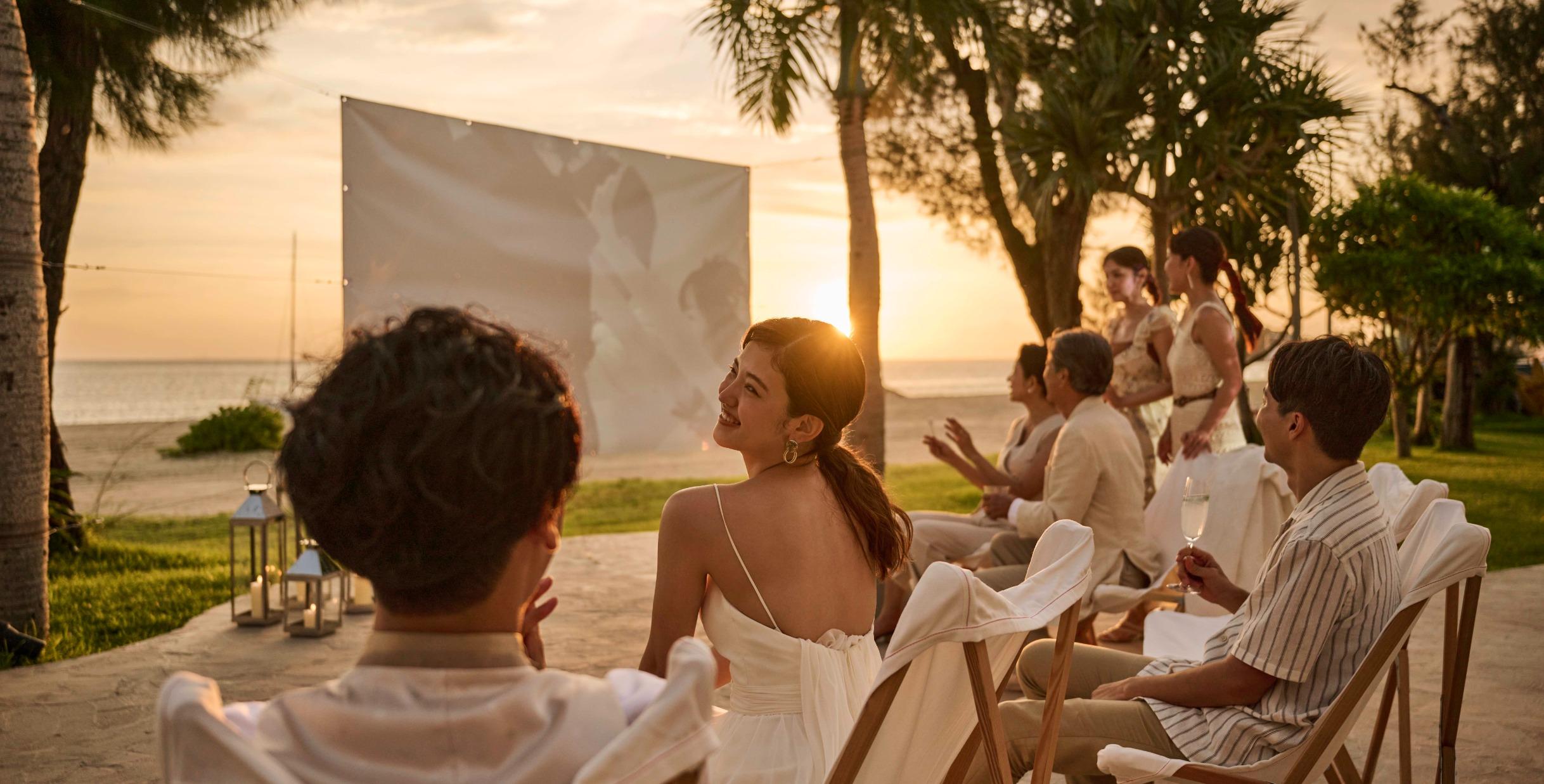 オクマビーチへと続く上質なテラス付きのパーティルームで、沖縄の食材をもちいたフレンチコースやテラスでのケーキカットなど海をみながらくつろぐ「ゆくるパーティ」を。