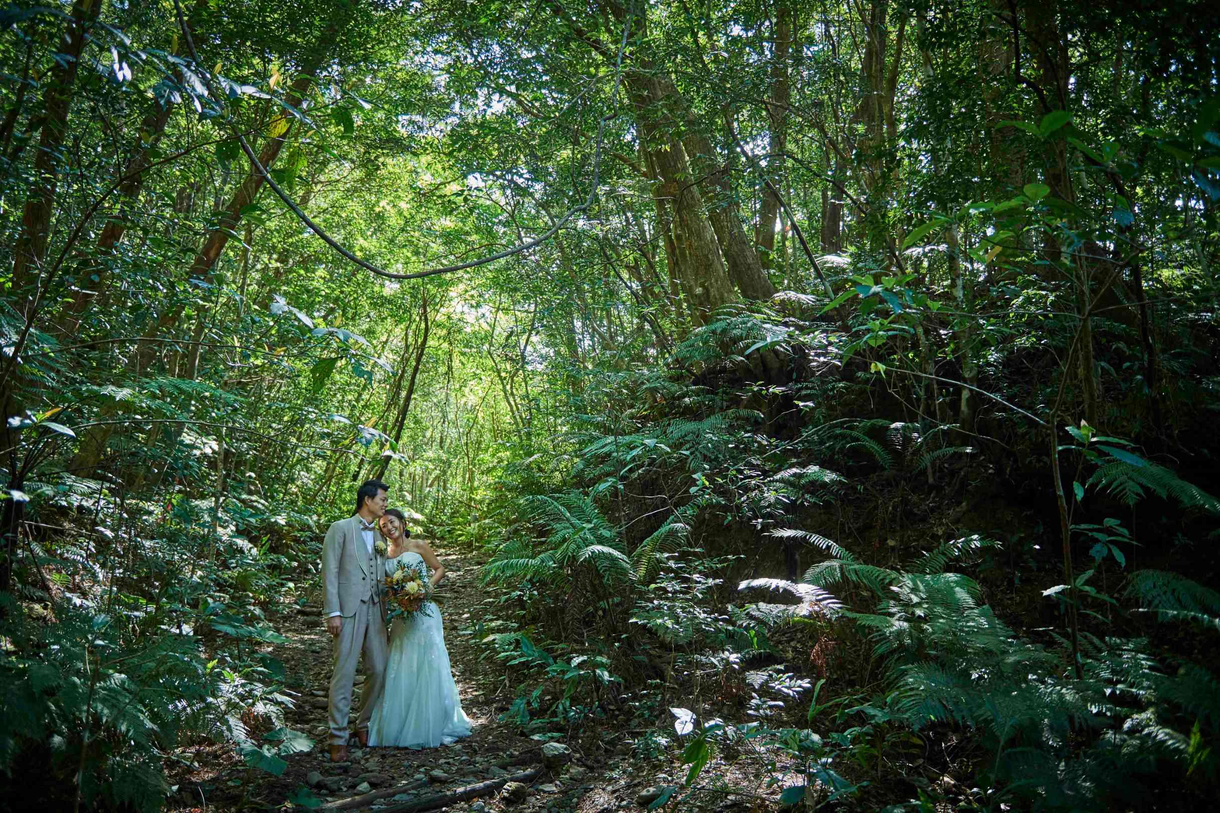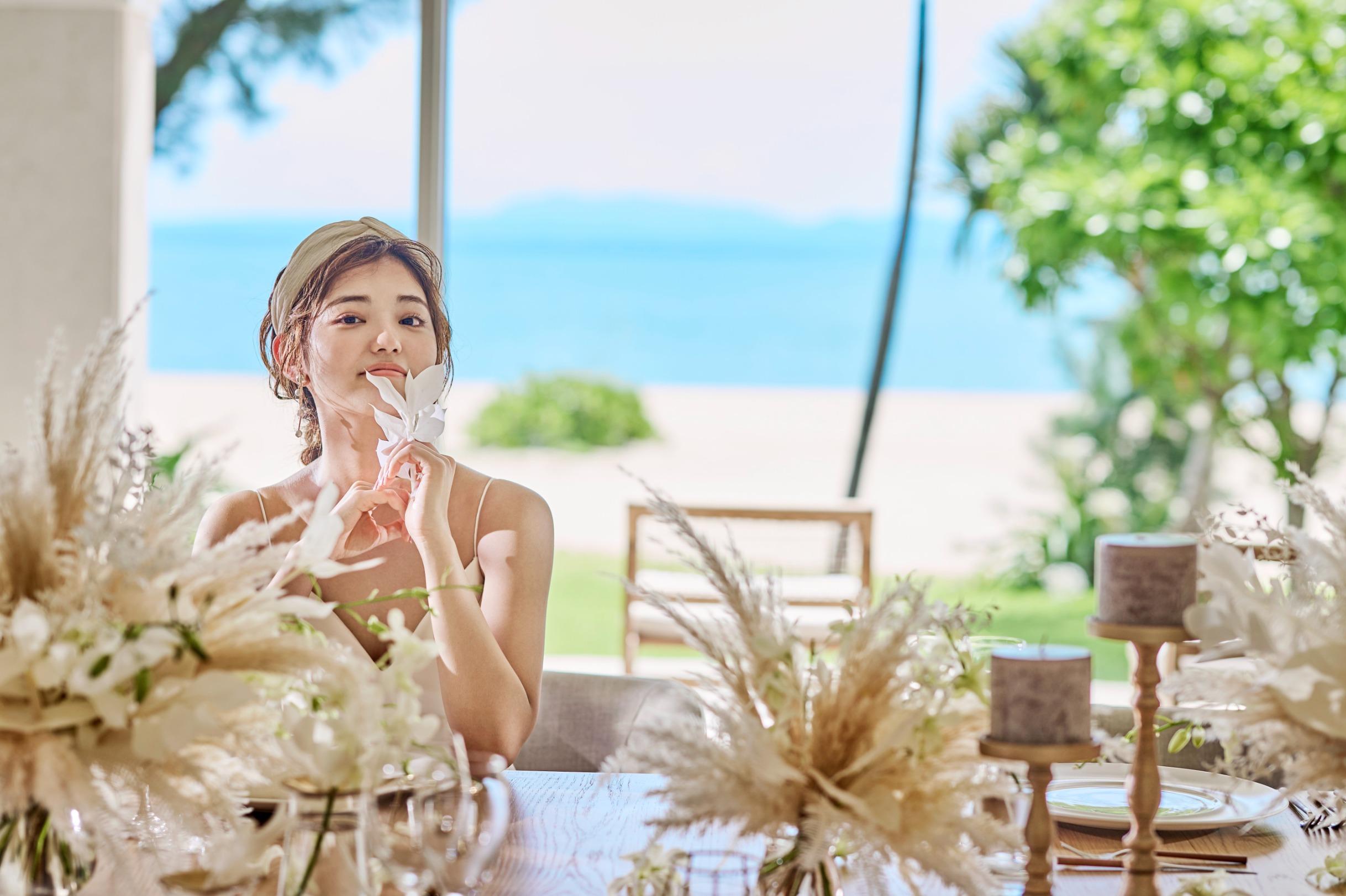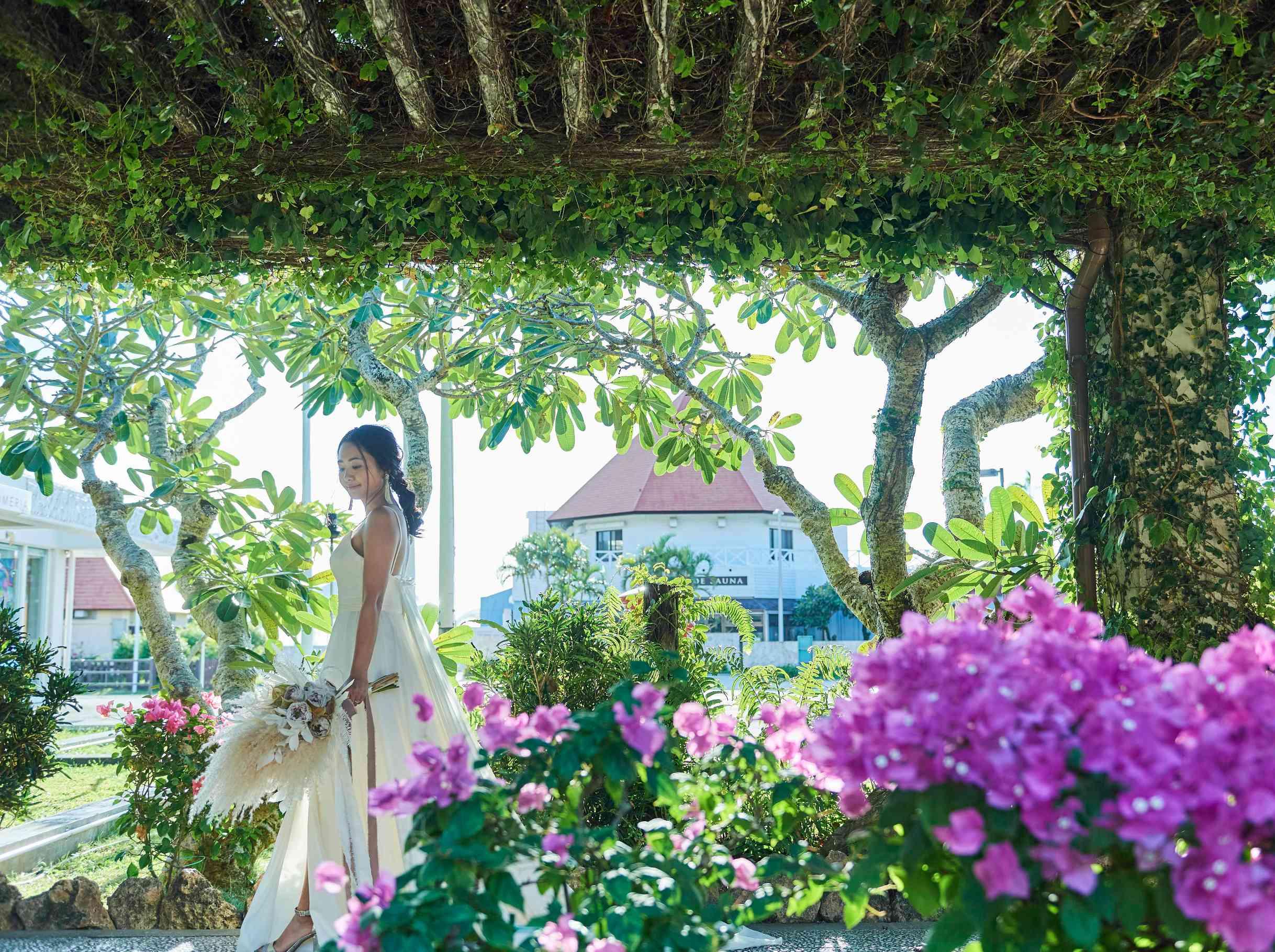 多くのフォトジェニックがあるこのリゾート地で、南国感たっぷりの自然や花々に囲まれて撮影を。