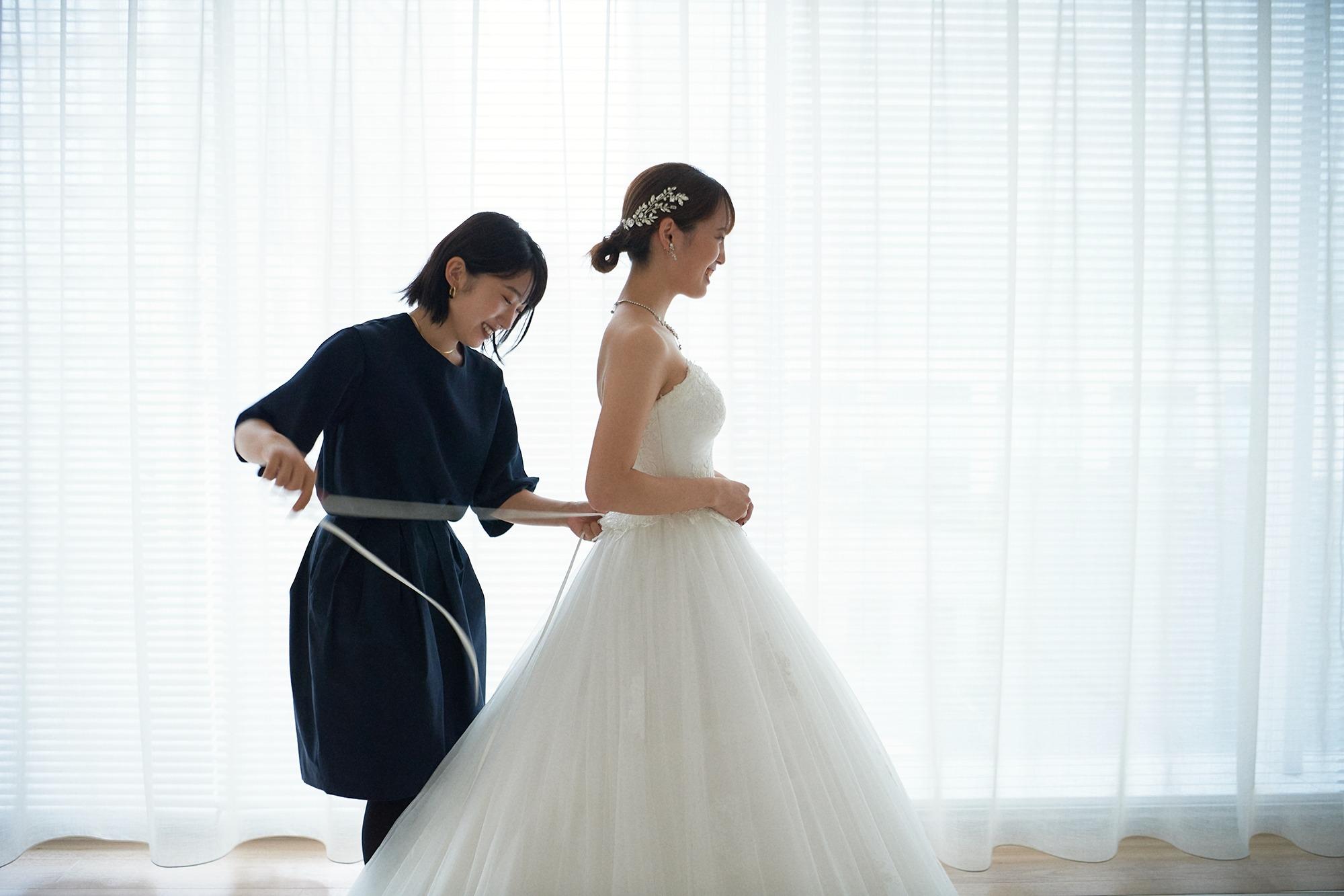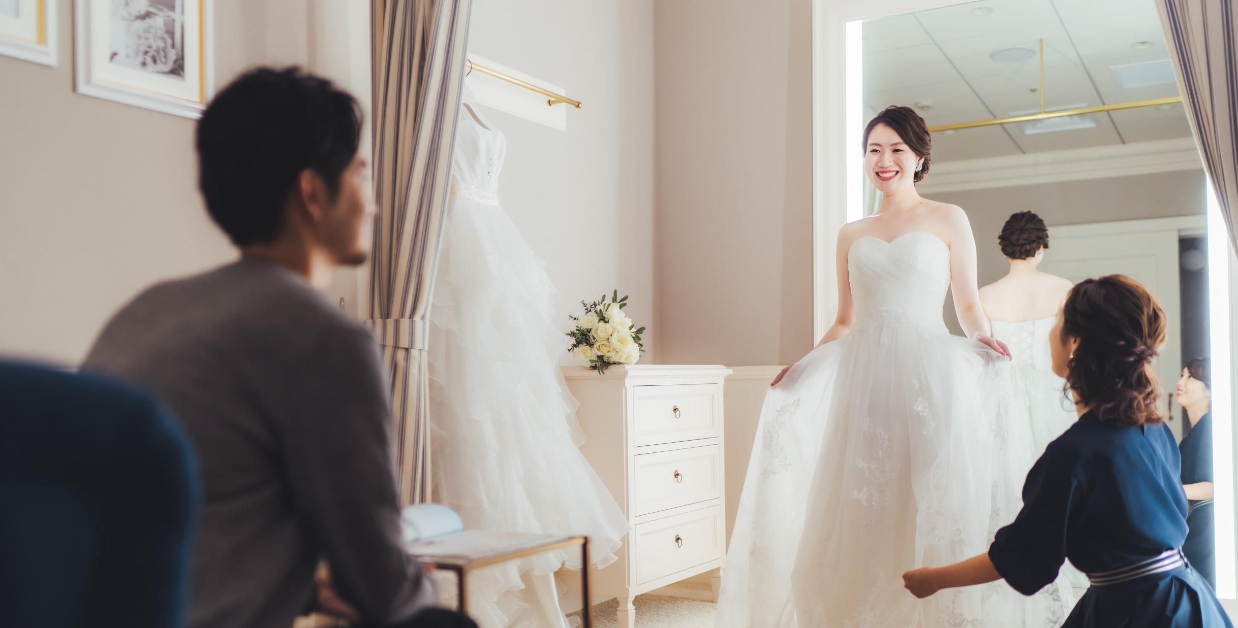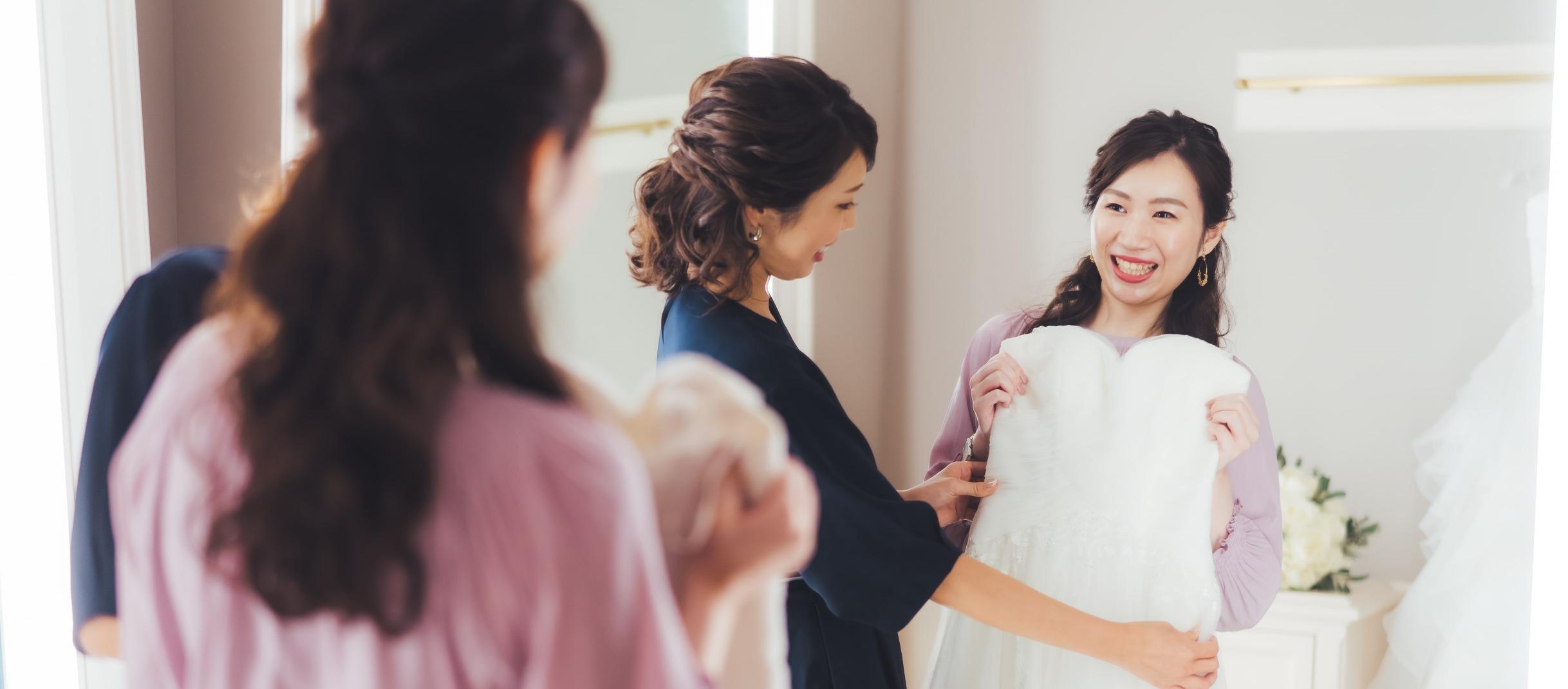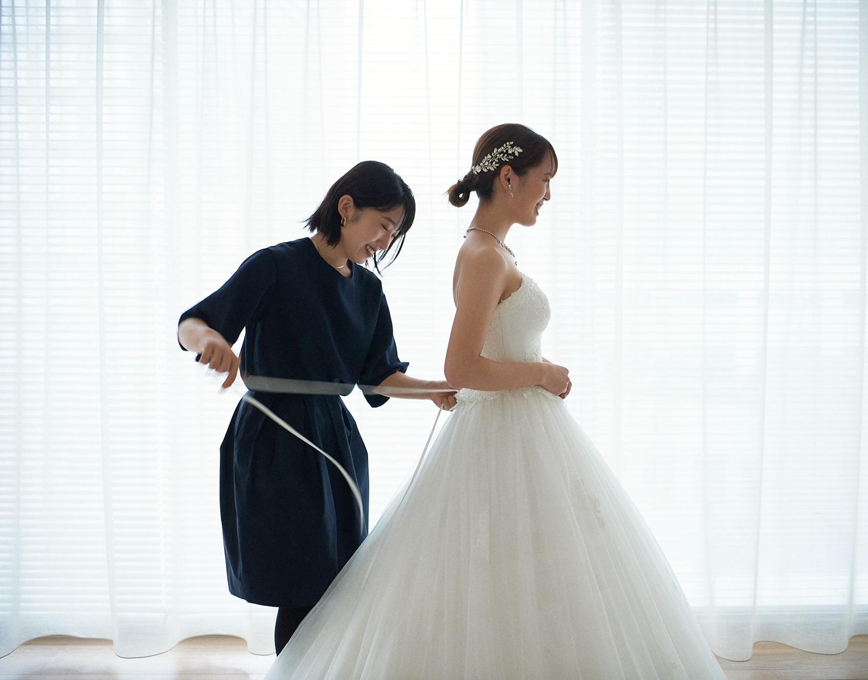 アールイズ・ドレスでは、随時無料でドレス見学&試着フェアを開催中。憧れの1着をドレスコーディネーターにお気軽にご相談ください。