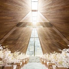 ◆天井高10m!圧巻のスケール×全天候型の光×木の温もり感じる「唯一無二のチャペル」生演奏の音色と天窓から降り注ぐ水のせせらぎは圧巻♪フェアにて模擬挙式体験を実施 -