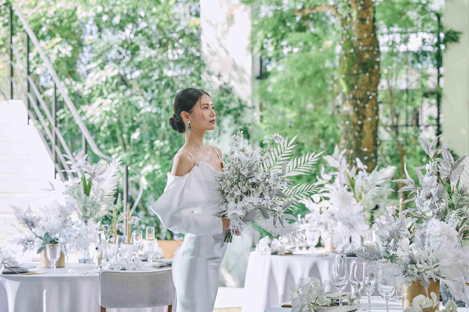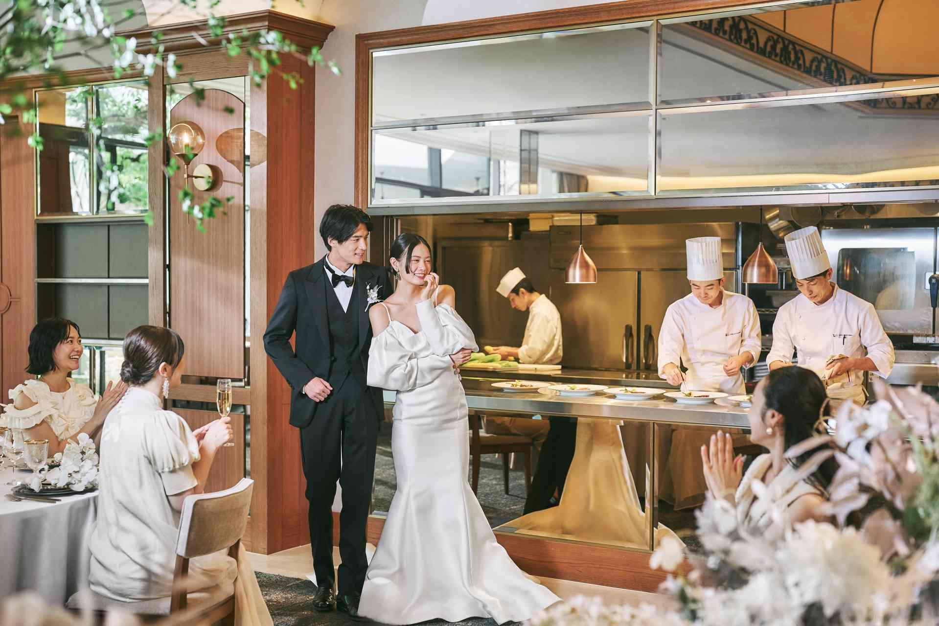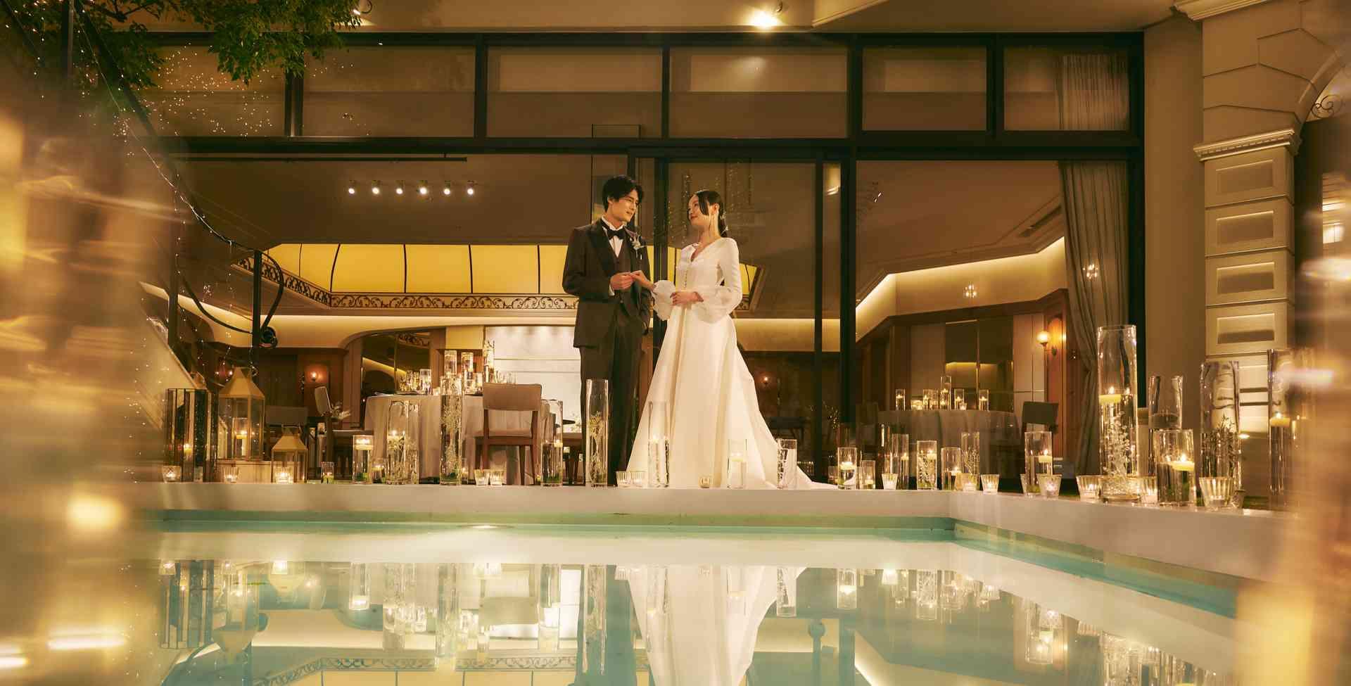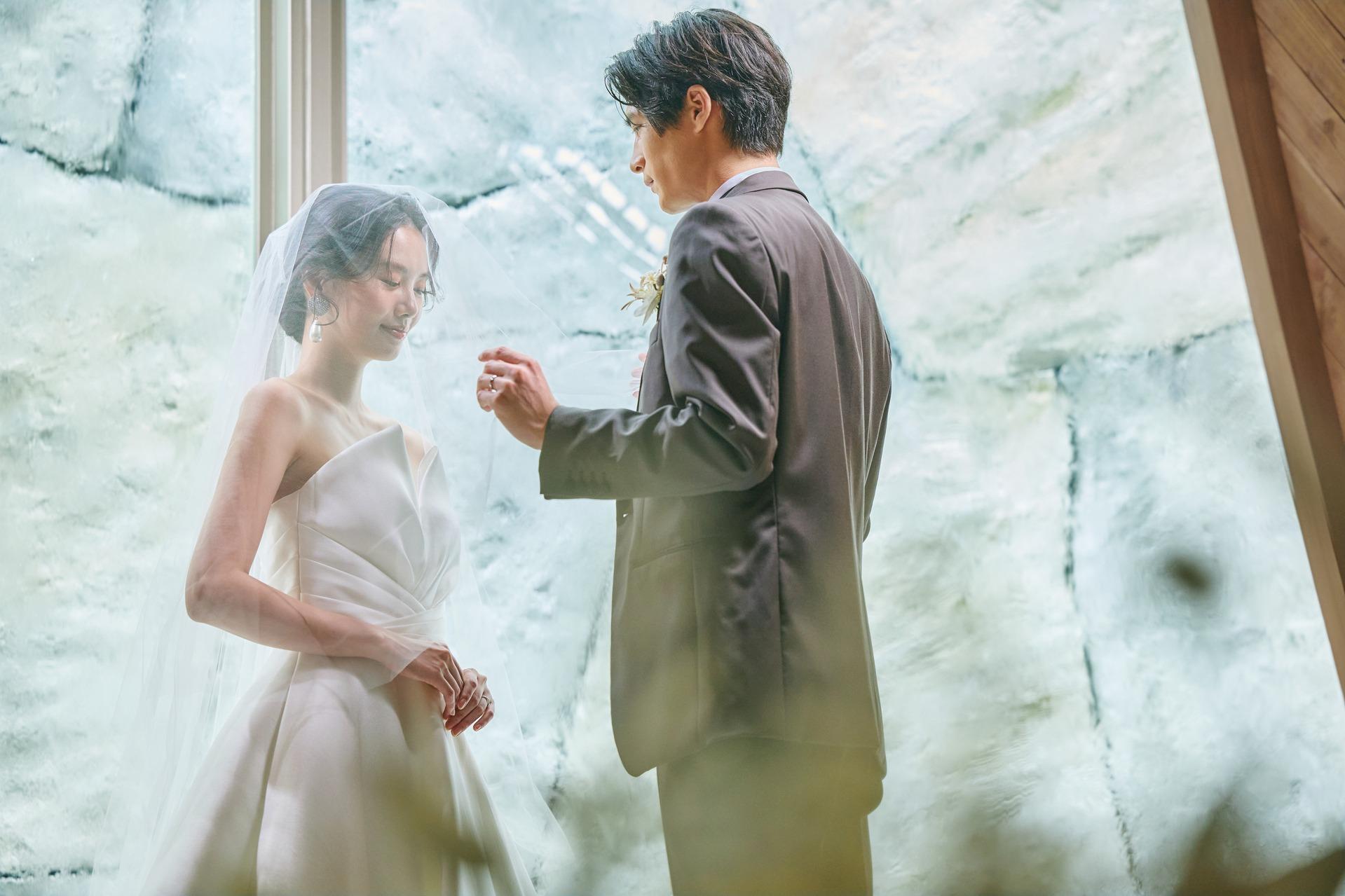 館内にはフォトブースを設けたり装飾を加えるなどふたりの好みの空間づくりもできる。パリのホテルのような空間で特別な写真を残すことができる。大きな窓から差し込む自然光がドレス姿をひときわ美しく輝かせる。