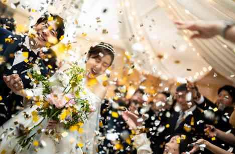 祝福の"コンフェッティシャワー"