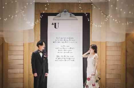 これまで出会ってきた人たちが輪になって、その輪の中で喜びと幸せが何倍にも広がっていくような、そんな意味も込めてつくった"&U"というコンセプトをおふたりの背景に、ゲストの皆様に包まれるような挙式の時間にしました。 ゲストの皆様にコンセプトが伝わることで、皆さまの気持ちもひとつになって、感動も倍に。