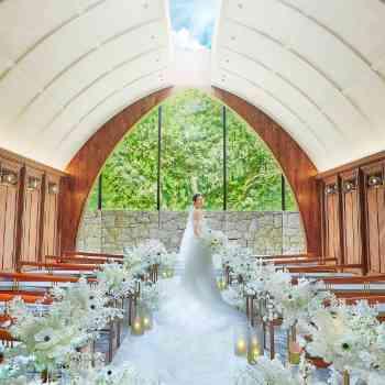 見守る家族・ゲストとの『距離感』が近く、温もりに包まれる空間。天井から差し込む自然光と落ち着いた木目の調和が花嫁を美しく引き立たせます。おふたりとゲストの絆がさらに深まる本格的な感動挙式が叶います。