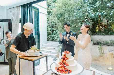 ゲストと触れ合える歓談を出来る限り取りたいとおっしゃっていたおふたり。 一軒家貸切だからこそ、ゆっくりと時間を使えることもアーカンジェル代官山の魅力のひとつ。 披露宴後半では全天候型のインナーガーデンでゲストとのお写真タイムを! 自然に囲まれてリラックスできる空間でアットホームに過ごしていただき、新郎新婦もゲストも笑顔が溢れる時間となりました。