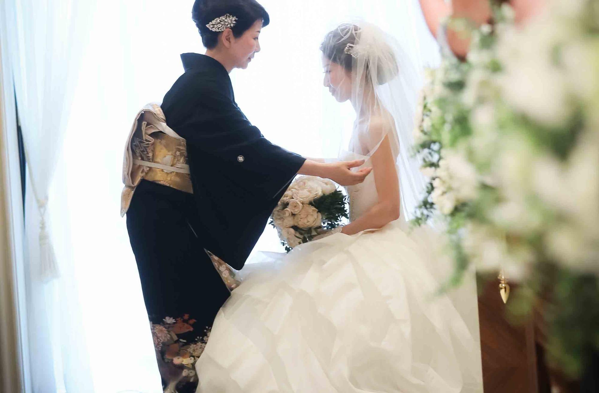木の温もりを大切にしたシンプルなチャペルにはご新婦様のドレス姿がとても映えます! また、挙式前には新婦の親御様とのファーストミートを行い、ご家族様との時間も大切に過ごしていただきました。