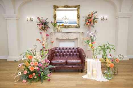 春のお花が大好きだったご新婦様。お二人が一番長く座っていただくメイン席には、春にしか使うことができない、チューリップやポピーをあしらって、彩鮮やかに装飾をしました。メイン席も、敢えてテーブルではなくソファ席にすることで、ゲストとのお話がしやすい距離感になり、歓談中も沢山お話をしていただくことができました。またソファ席にしたことで、こだわりのドレスが裾の部分までしっかりと見ていただけました。