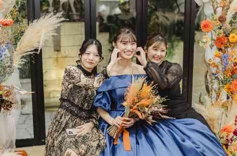 お打合せをしていくなかで、たいせつなゲストの皆さまと関われる時間を過ごしたいとご要望がありました。演出とのバランスを考え、自由に動きのある時間を創りました。おふたりのメインのお席だけでなく、披露宴後半にはガーデンテラス側のフォトスポットで、また違ったお写真の雰囲気を残すことができることもポイントです。