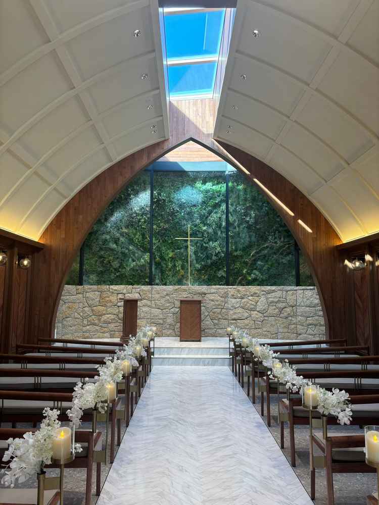 会場全体の雰囲気がとても上品で、静かで落ち着いた空間が印象的でした。最近リニューアルされたチャペルは、自然光が差し込む美しい設計で、入るとヒノキの香りに包まれました。